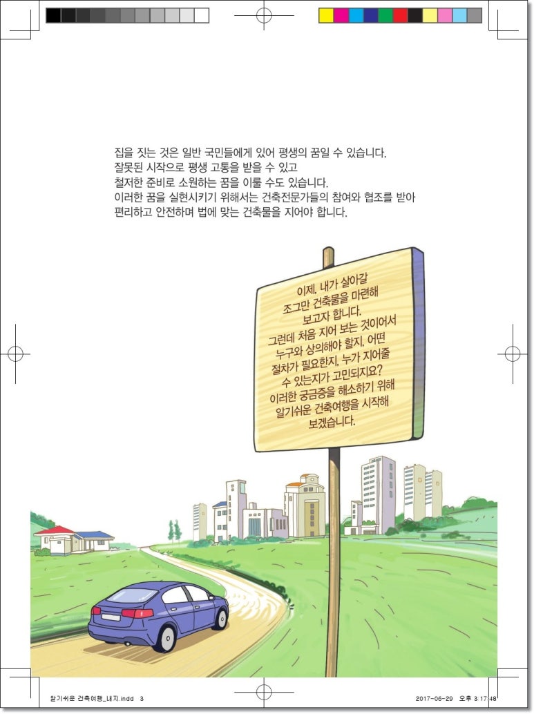 국토부에서 건축물 허가부터 철거까지 규정 및 절차를 만화로 쉽게 배울 수 있는 "만화로 체험하는 알기 쉬운 건축여행"을 발간하였습니다.